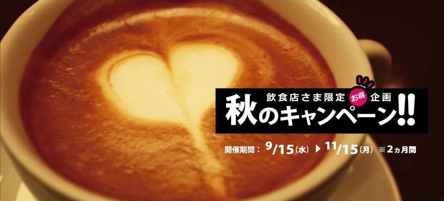 飲食店さま限定「お得」企画 秋のキャンペーン!!
