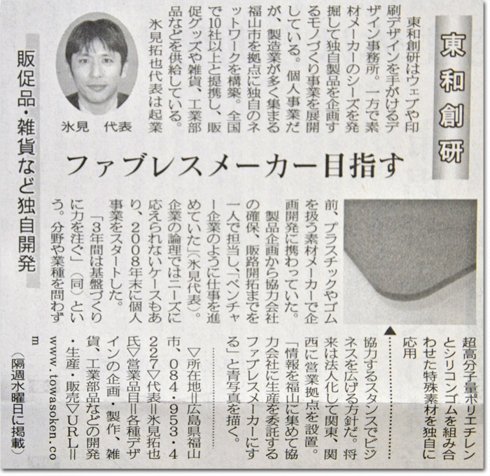 先日、日刊工業新聞社さんに取材を受けていたのですが、掲載前に告知するのもどーだろって思ったのと、掲載日がズレてしまったこともあって、今日まで掲載紙は伏せていました。