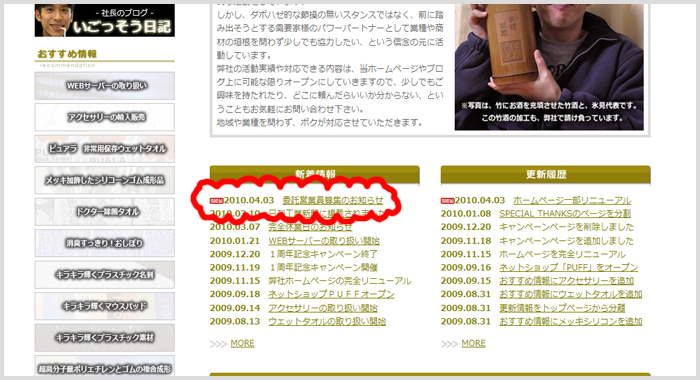 プチ・リニューアルした弊社ホームページの、TOPページの中腹・・・