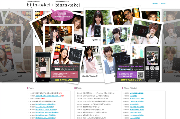 同社で提供されているサービスには、この美人時計の他にも「美男時計」「ギャル時計」「サーキット時計」「韓国版」などなどいろんなバージョンがあって、商用でなくてもちょっとした目の保養にはおすすめですヘ(・o・Ξ・o・)ヘ