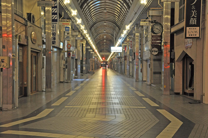 人っ子ひとりいないアーケード街