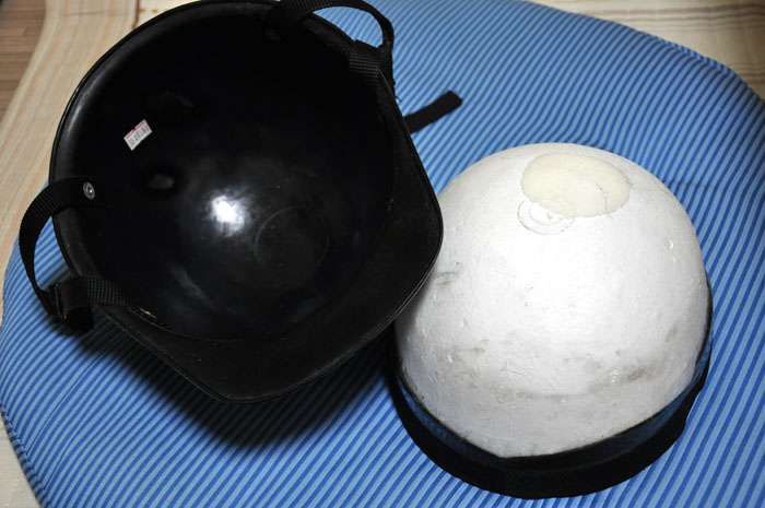 )何の特長もない、普通の格好ですが、中の発泡材を抜いてかぶると・・・