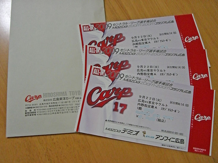 カープさんにお力添えをいただき、無事チケットを送っていただきました
