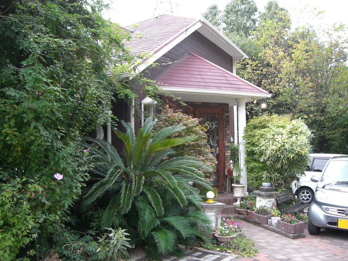 (緑に囲まれたお店の入口付近